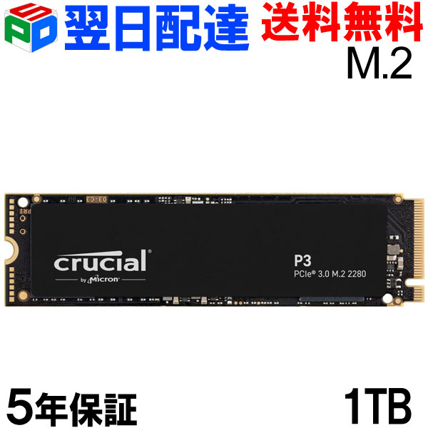 【楽天市場】Crucial クルーシャル 1TB P3 NVMe PCIe M.2 2280 SSD R:3500MB/s W:3000MB/s 【5年保証・翌日配達送料無料】パッケージ品 CT1000P3SSD8:SPD楽天市場店