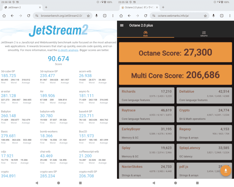 ブラウザ jetstream2 90.674 80.542 91.848 79.168