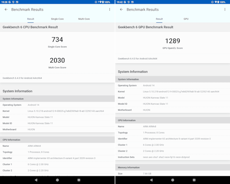 「Kamvas Slate 11」のSoCはHelio G99。ARM Cortex-A76が2コア、Cortex-A55が6コアのbig.LITTLE構成で、GPUはMali-G57 MC2(2コア)。