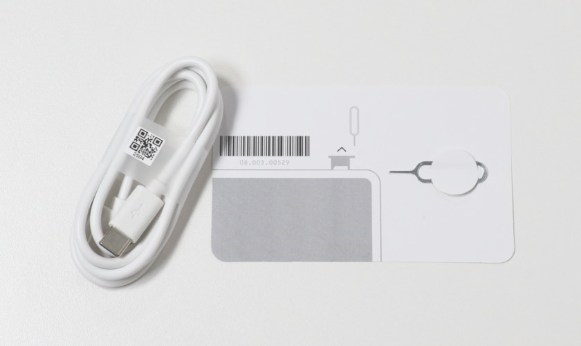 USBケーブルとSIMピン。電源アダプタは入っていません