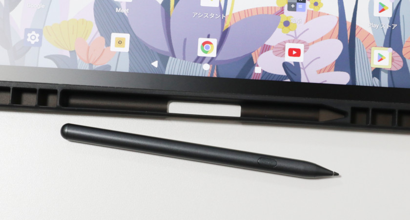 ペン収納スペースもあります。なお、ペンには本体とのマグネット吸着機能はありません。