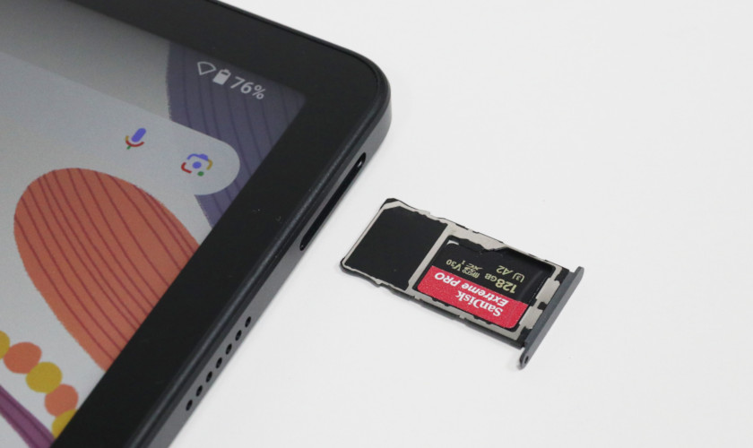 インターフェースは、左右にクアッドスピーカー。横持ち時の右側にmicroSDカードスロット。