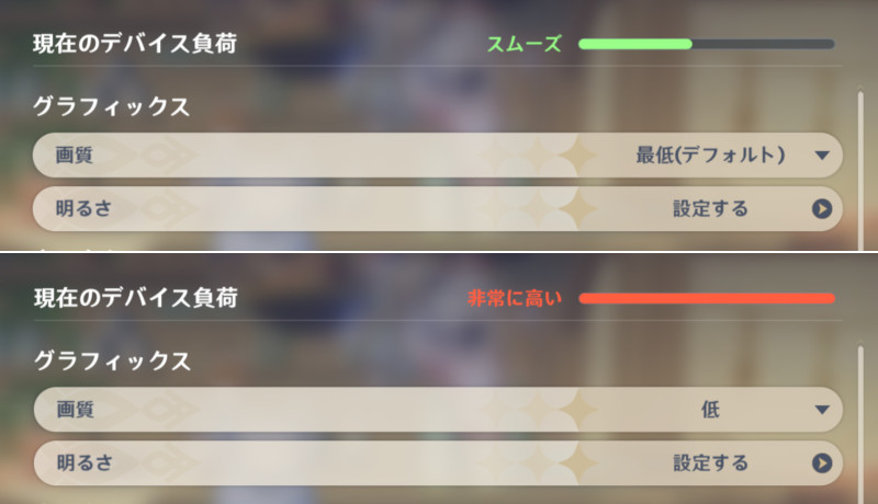 原神は、”最低”画質で”スムーズ”、”低”画質で”非常に高い”になりました。