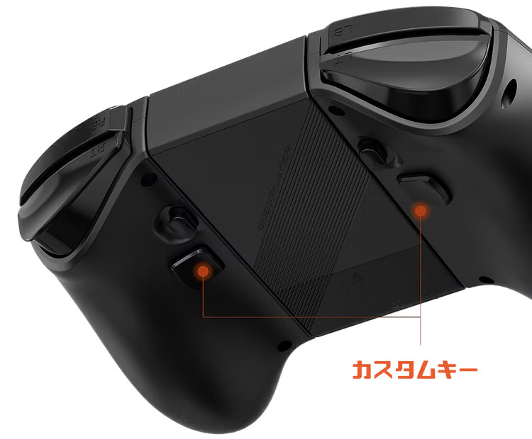 コントローラーの背面にはカスタムキーがあります(カスタムキーの上の突起は取り外しボタン)。