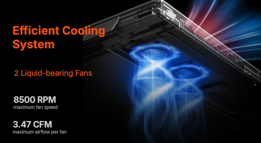 ちなみに「OneXPlayer X1」は4300RPM/5.9CFMのシングルファンに、フィンの放熱表面積が15,400mm2。