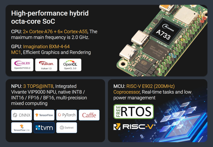 2025年8月25日、Radxaは、Raspberry Pi ZeroサイズでAllwinner A733を搭載したSBC「Cubie A7Z」を発売しました。