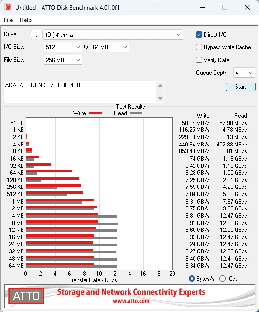 ATTO Disk Benchmarkはファイルサイズが小さなファイルにおけるスループットを計測するベンチマークです。