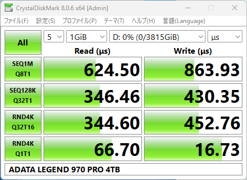 コントローラーの特性か、細かいファイルよりも大きなファイルの方が得意なようで、Gen5 SSDなのにアーカイブ向きというのはちょっとちぐはぐで、個人的には面白かったり。