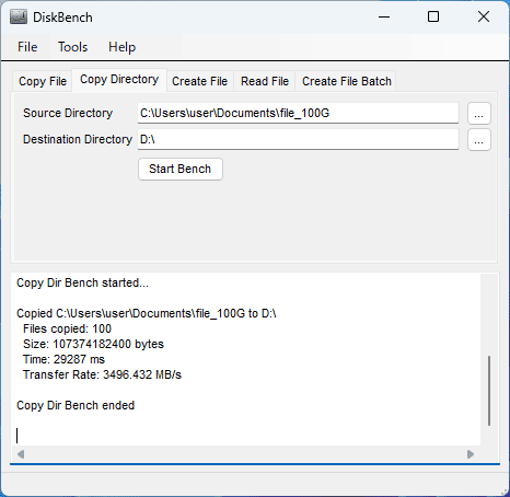 100GB(1GB×100)のファイル:29.287秒 (3496.432 MB/s)