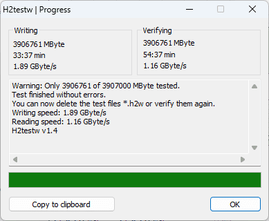 トータルでは、書き込みは平均1.89GB/s、読み込みは平均1.16GB/sでした。