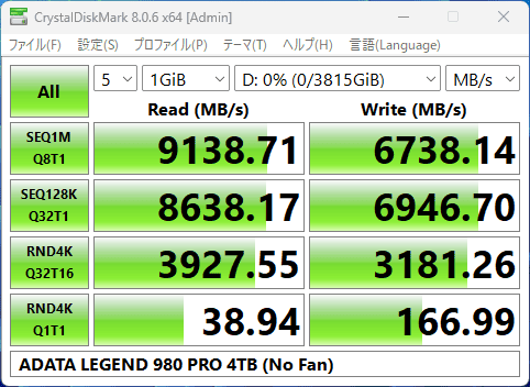 そんな激安SSDが、本当にGen5クラスであるのか、実際に確認してみたいと思います。