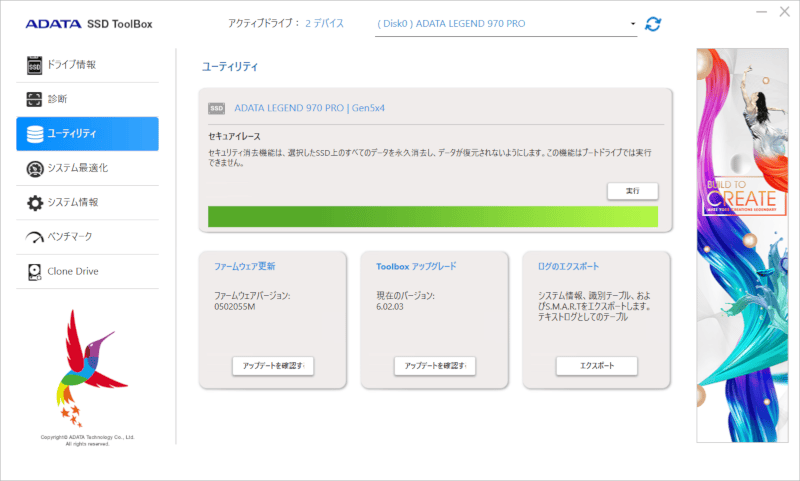 ADATAでは「SSD Toolbox」という管理アプリが用意されています。