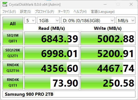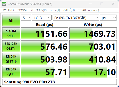 ついでに比較として「BD790i」で計測した「980 PRO」も掲載。