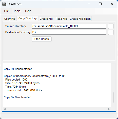 ファイル転送は「DiskBench」を使って計測。