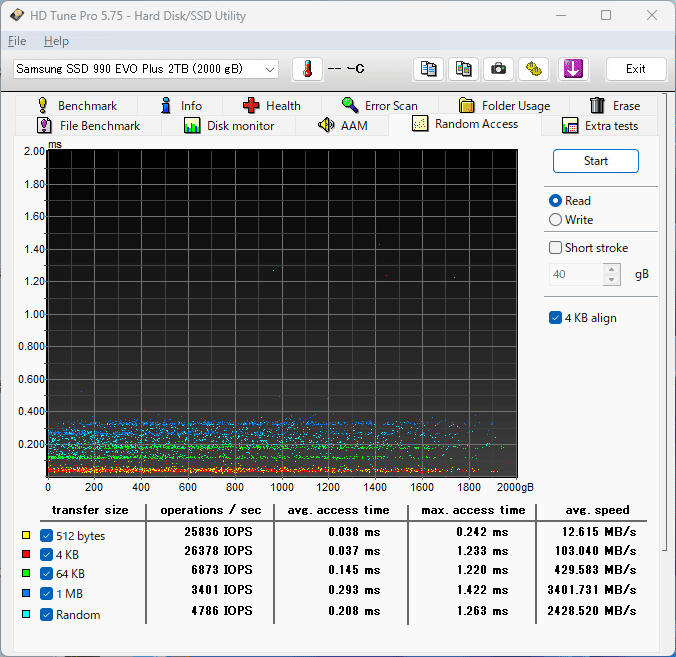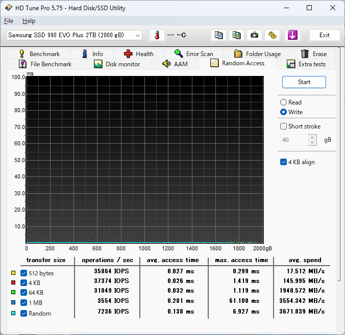 アクセスタイム(下の黄色い点)もややばらけています。