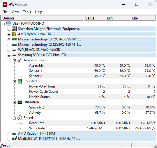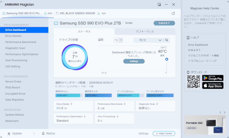 「990 EVO Plus(2TB)」は4TBモデル同様爆熱に不安が残るものの、素性そのものはいいので性能が保証されています。