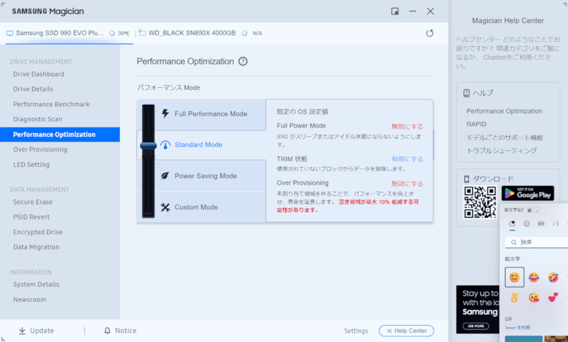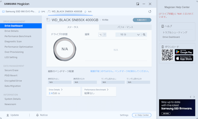 大手SSDメーカーらしく、管理アプリも用意されています。