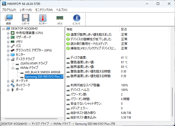 上がシステムSSD、下がレビューSSDです。
