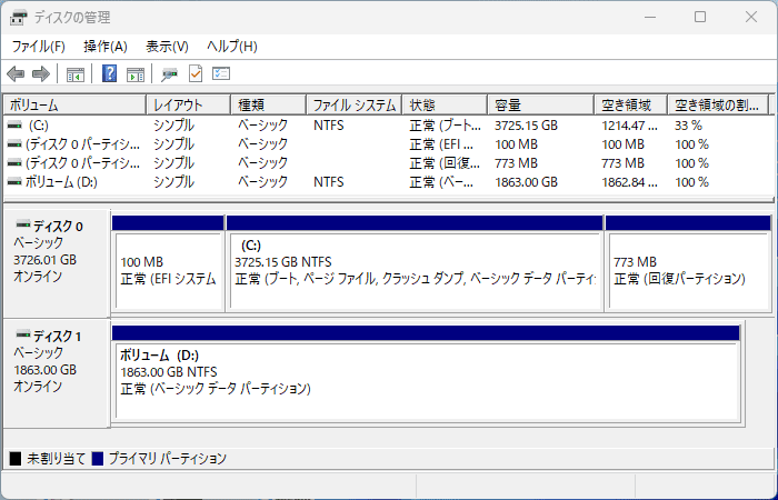 実容量は1863.00GB。