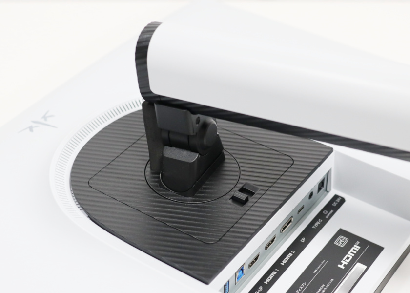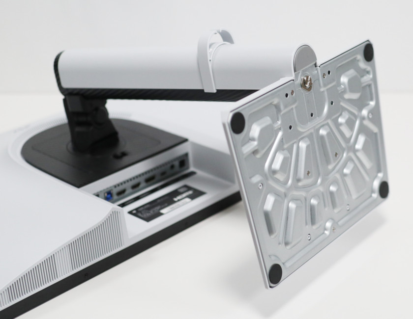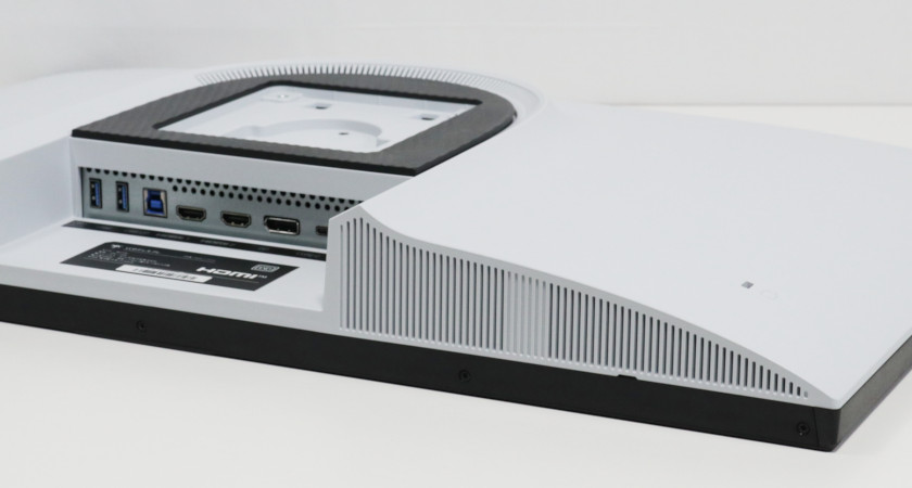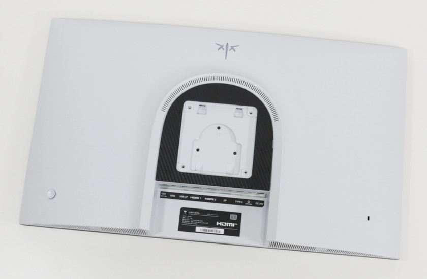 本体背面。ハイエンドモニターとしては珍しく、白系(灰白色)です。