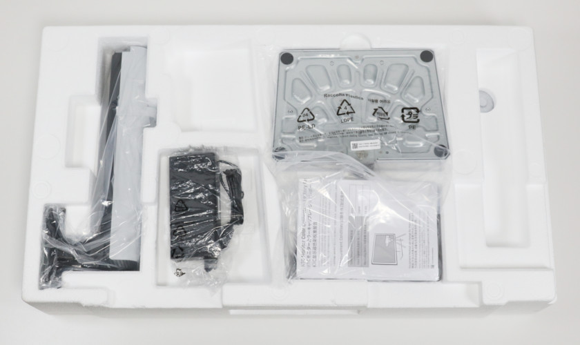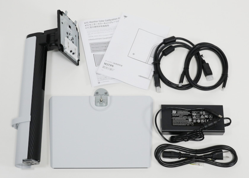 付属品はDisplayPortケーブルとType-Cケーブル、電源アダプタ、スタンド脚。