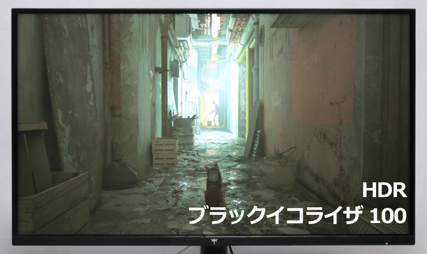 輝度の調整に癖があるのか、ほんの一部だけ明るいのは苦手なようで、画面の3割程度が明るくないと本領を発揮しないのは惜しいところ。