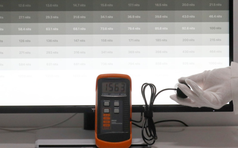 仕様より数字が低いじゃないか!と思うかもしれませんが、ピーク輝度ではきっちり1400nits以上出ています。