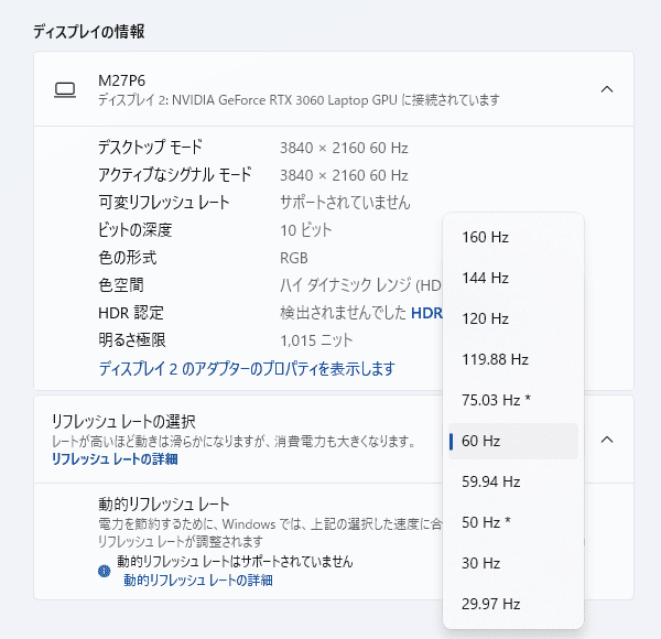 リフレッシュレートについて