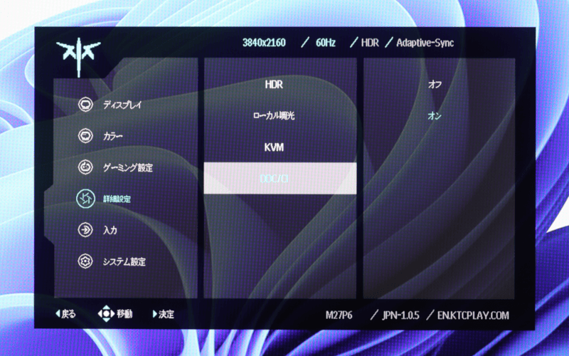DDC/CI(Display Data Command Interface、PCとの双方向通信規格。アプリで明るさやコントラストなどを調整できるようになる)にも対応。