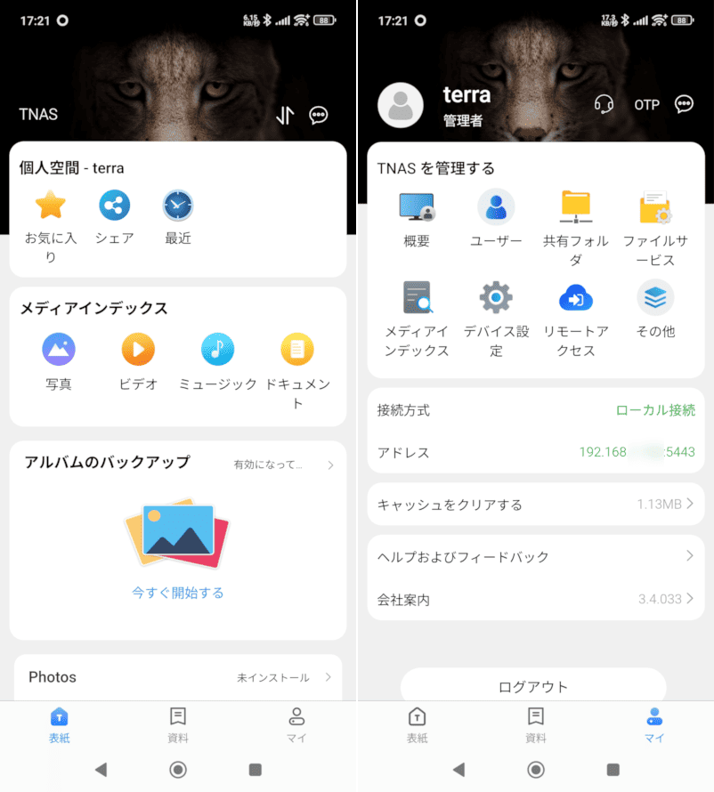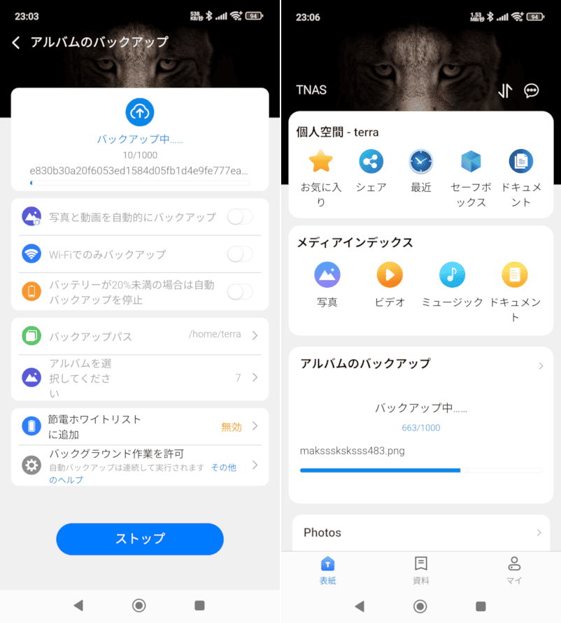 モバイルアプリはスマホで最も使われる写真・動画・ドキュメントの管理をメインに、ハードウェアの管理もできるという思想で作られているようです。