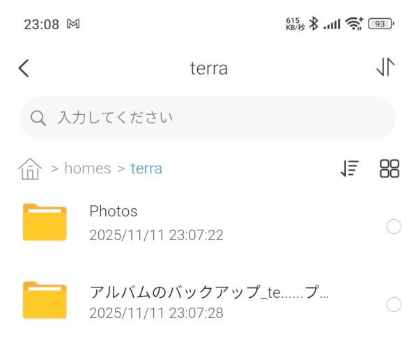Photosフォルダーにバックアップするものと思っていたら、別のバックアップフォルダーを作成していました。