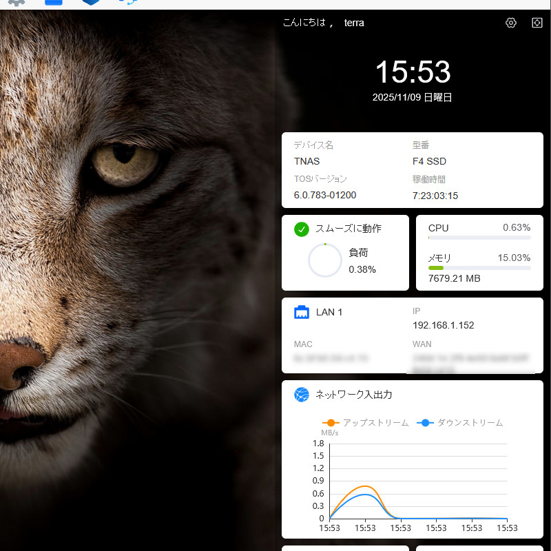 M.2 SSDの速度に慣れてしまうとちょっと遅く感じますが、SATA SSD並みの速度なので、NASの速度としては十分です。