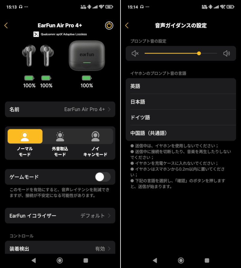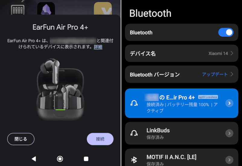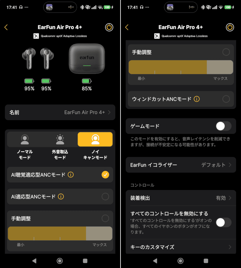 「Air Pro 4+」はEarFunアプリで管理できます。
