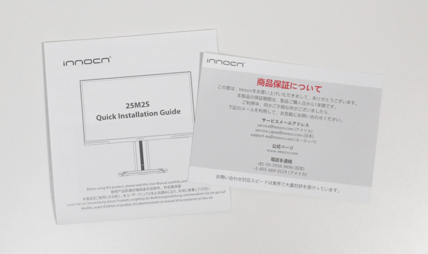 マニュアルと保証案内。