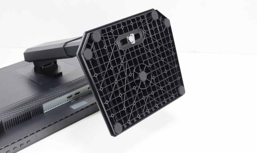 本体背面。INNOCNの名前が広がるきっかけとなった「27M2V」と同じ台型形状。