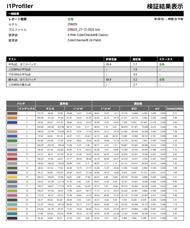 i1Display Proによる補正後の色精度。SDR時平均ΔE=1.7で、2.0を下回りました。