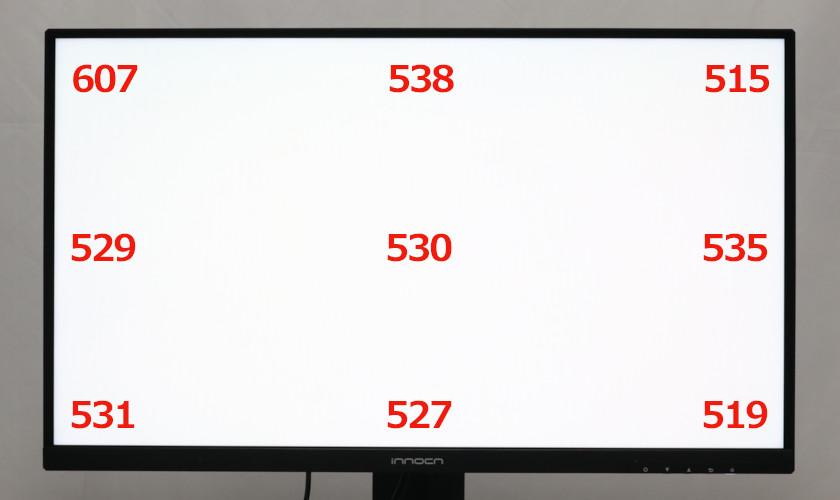 HDR時・明るさ100での各ポイントの輝度。
