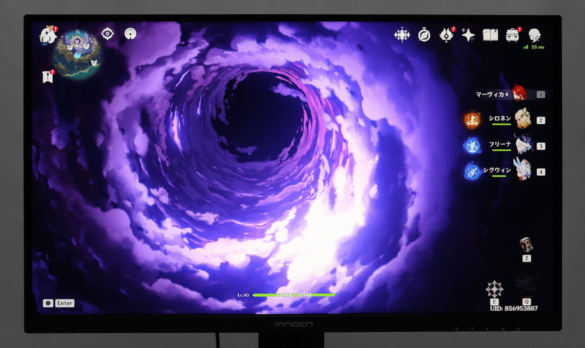 表示例とはしていますが、そもそも画像はSDRなので、モニターの明るさを正しく表現できていません。実際の目で見ると、砂漠のシーンはこんなぼんやりした太陽ではなく、中心がもっと明るいですし、原神もコントラストがしっかりしています。