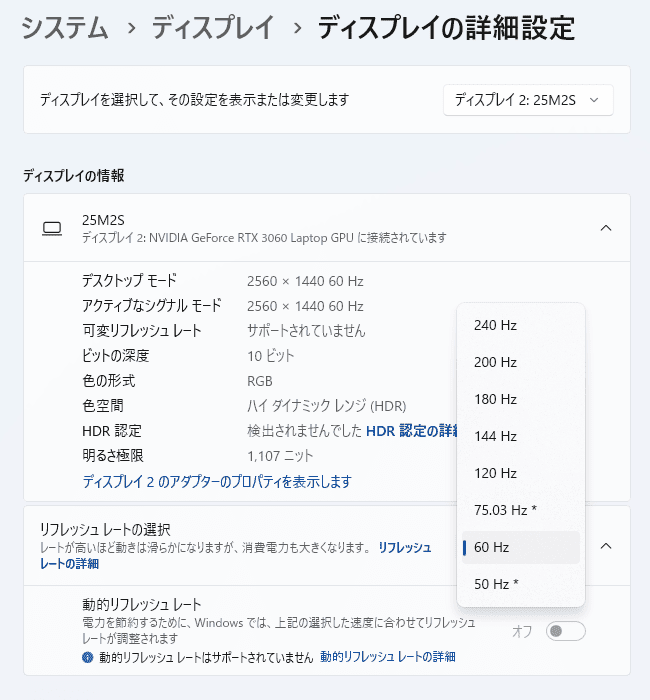 ちなみになぜ”HDR1000相当”かというと、DisplayHDRの認証製品一覧に名前がない自称だからです。
