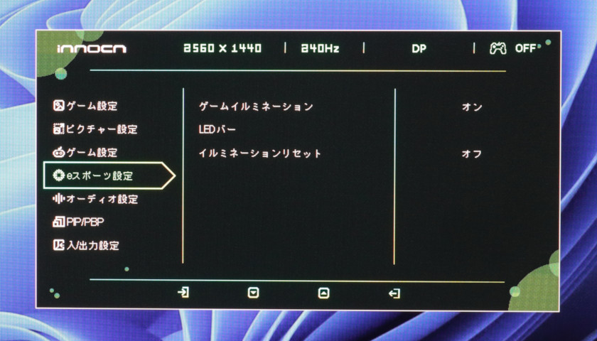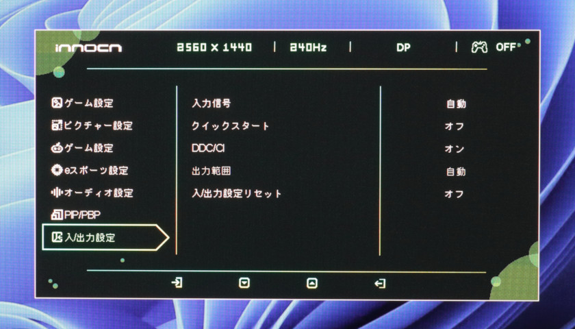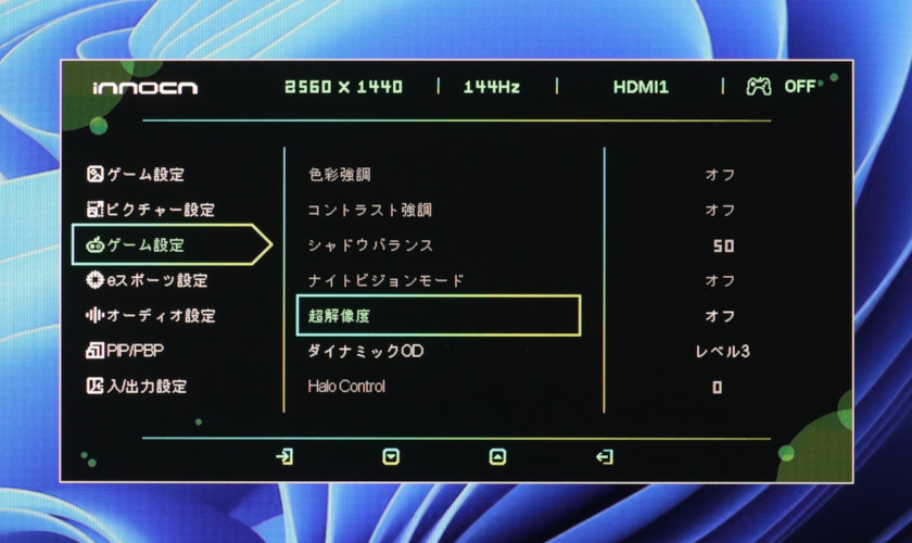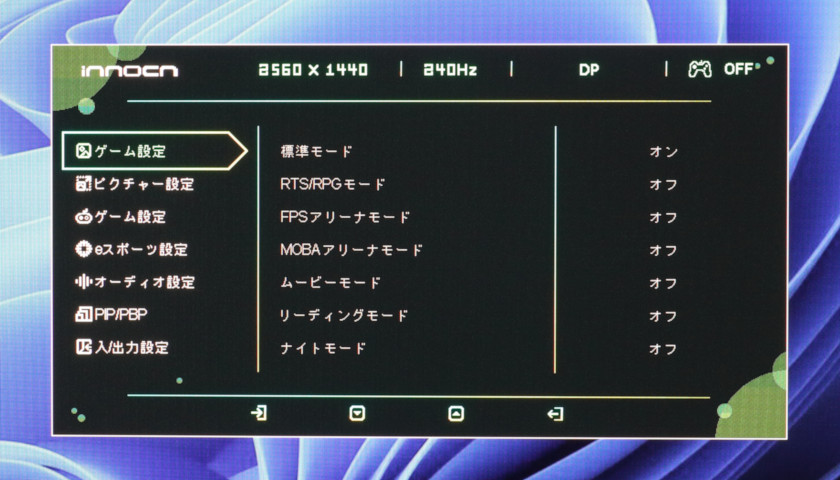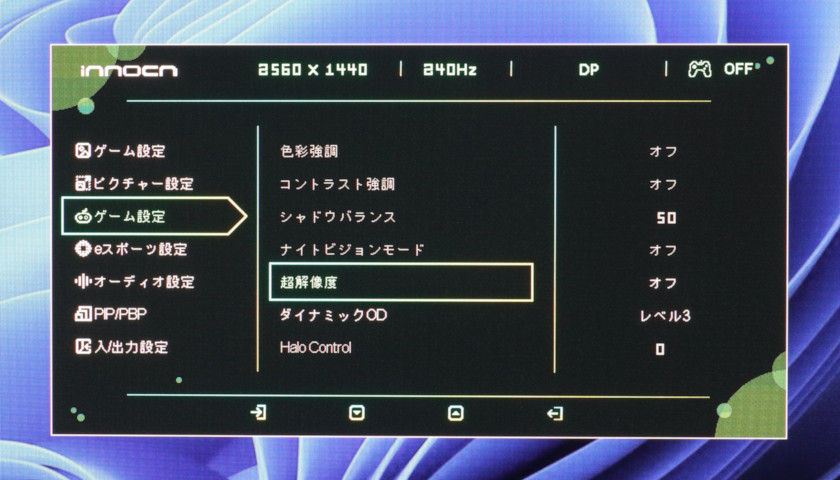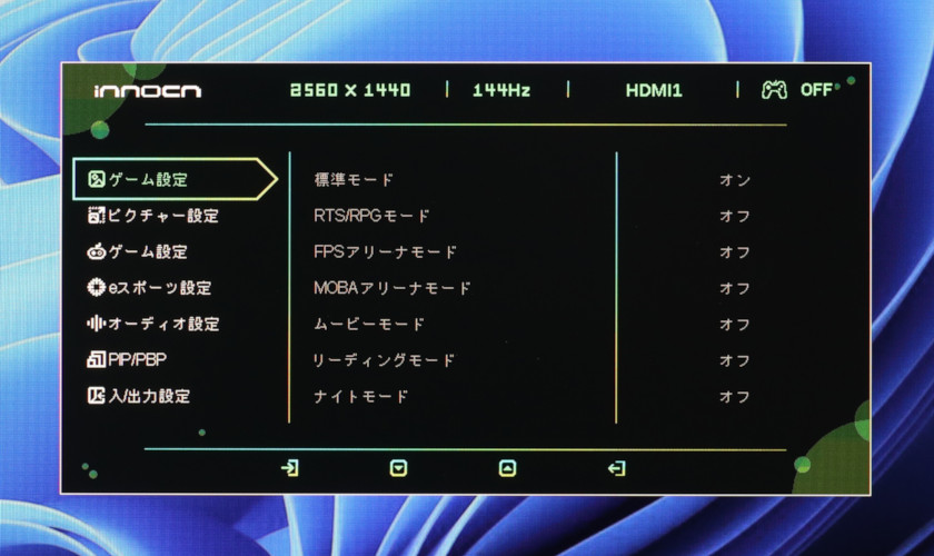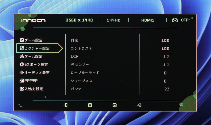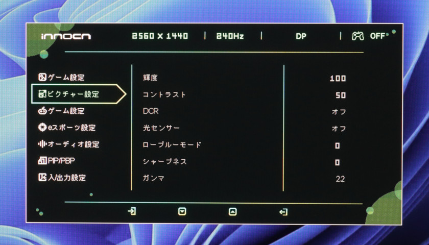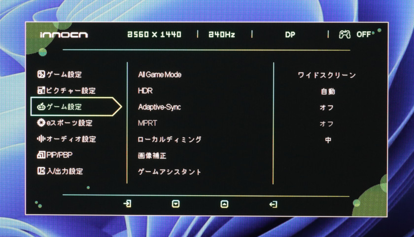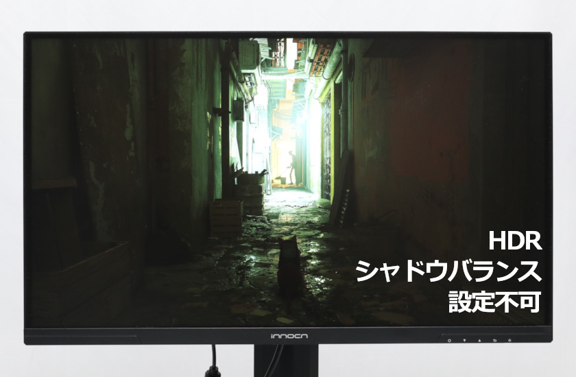 ついでに言うと、「ゲーム設定(上)」のモード選択と、「ピクチャー設定」もほぼブラックアウトで、HDR時はモニター側での調節はほぼ何もできません。