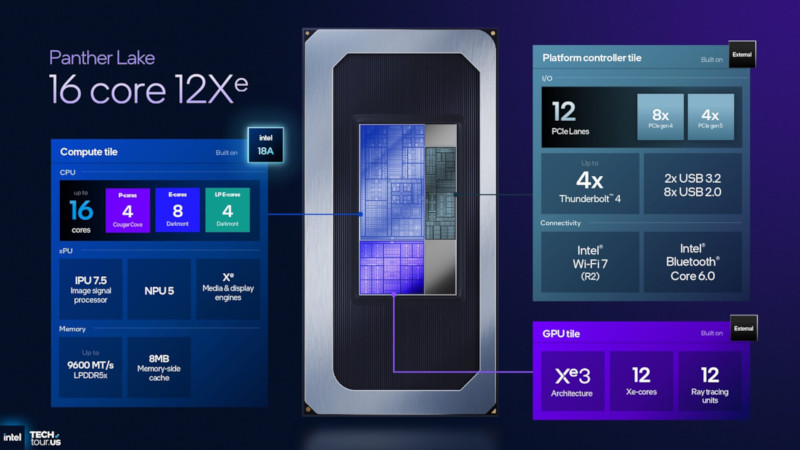 「Core Ultra シリーズ3」のCPUタイルは8コアと16コアの2種類。