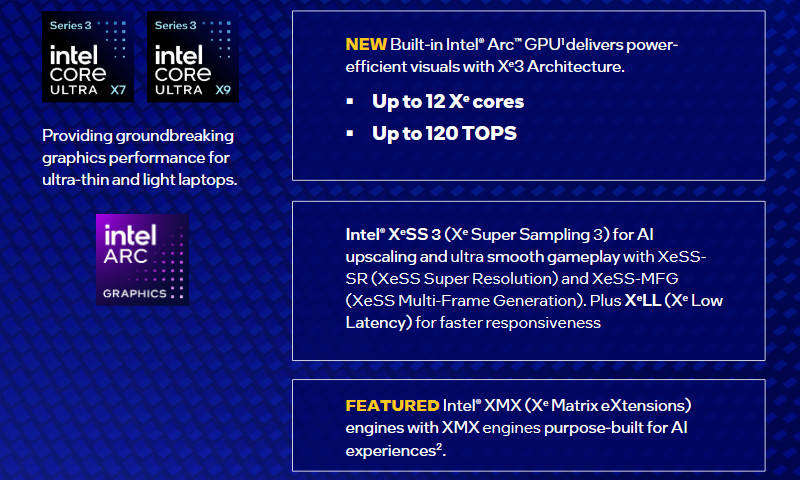 「Core Ultra シリーズ3」ではGPUに「Xe3アーキテクチャ」を採用。