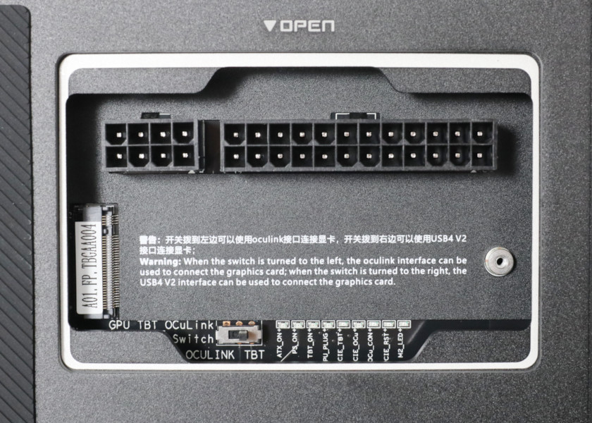 また、OCuLink / Thunderbolt 5(USB4)切り替えスイッチもここにあります。