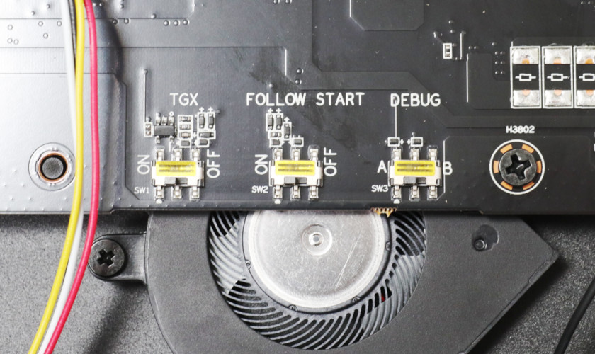 「TGX(一部のLenovo製品が対応するホットスワップ機能)」「FOLLOW START」「DEBUG」の、隠しスイッチあり。