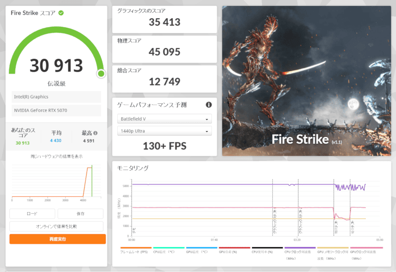 DirectX11のテストで、比較的軽いFireStrike。