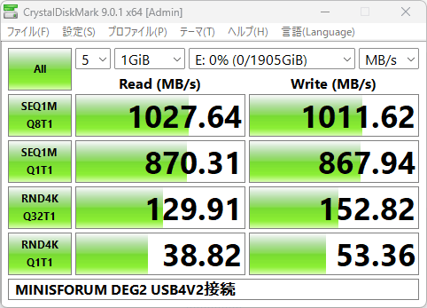 これまでと違って、USB4 V2がそれなりの速度になっています。