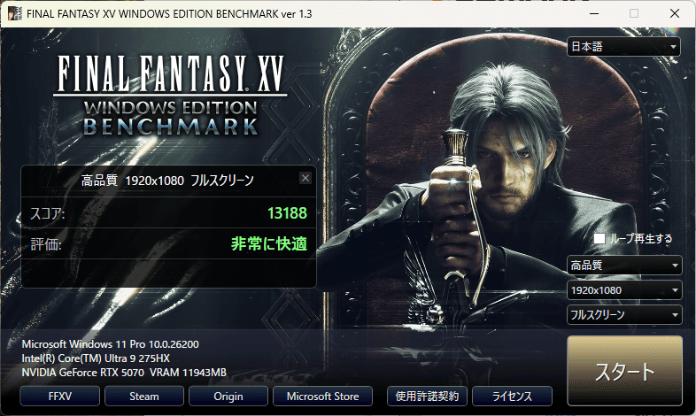 | FF XV(DX11) | 4K・高 | 9201 とても快適 |