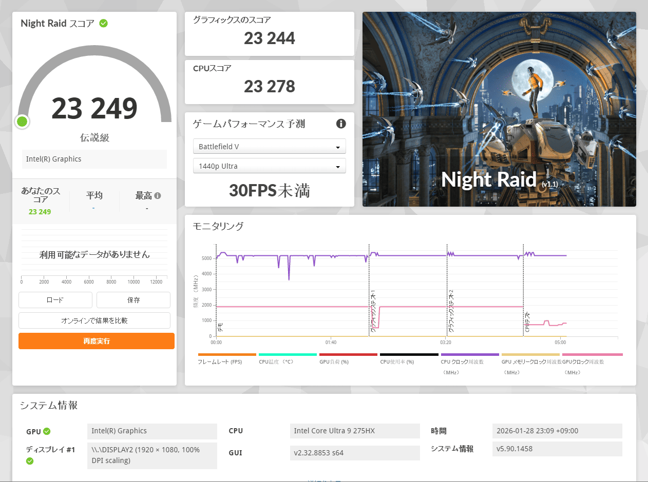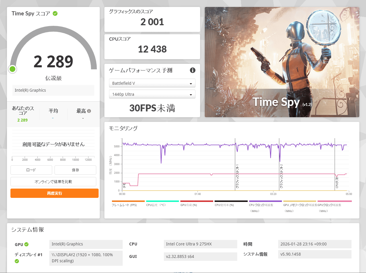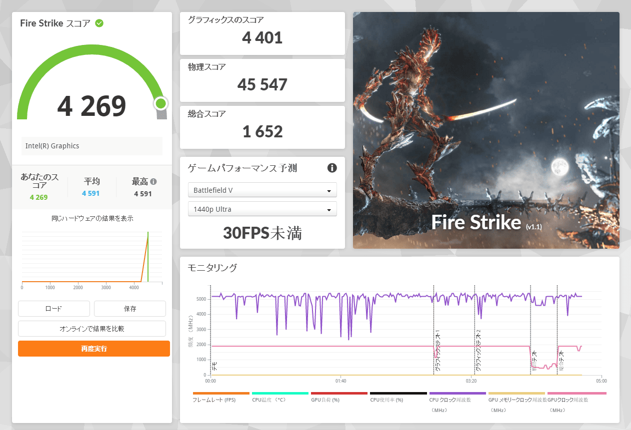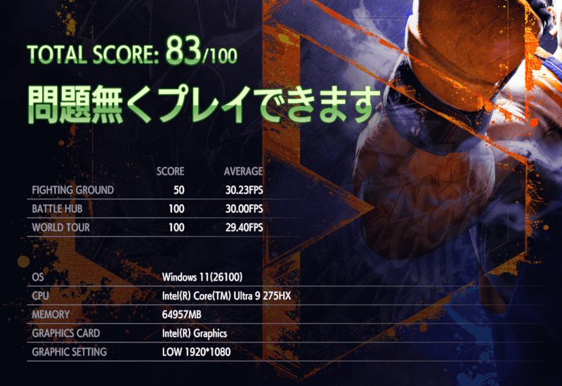 | 1280・標準 | 13751 とても快適 95.41 fps |