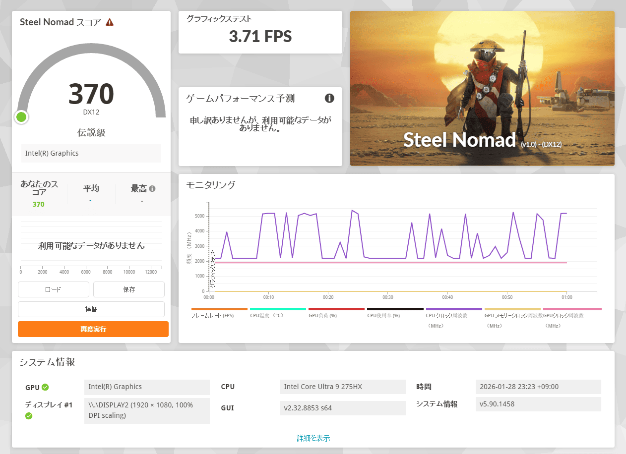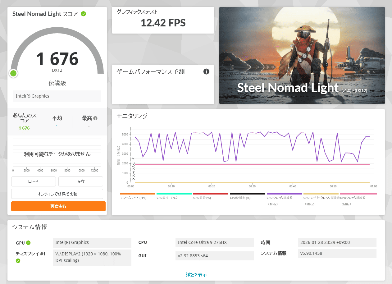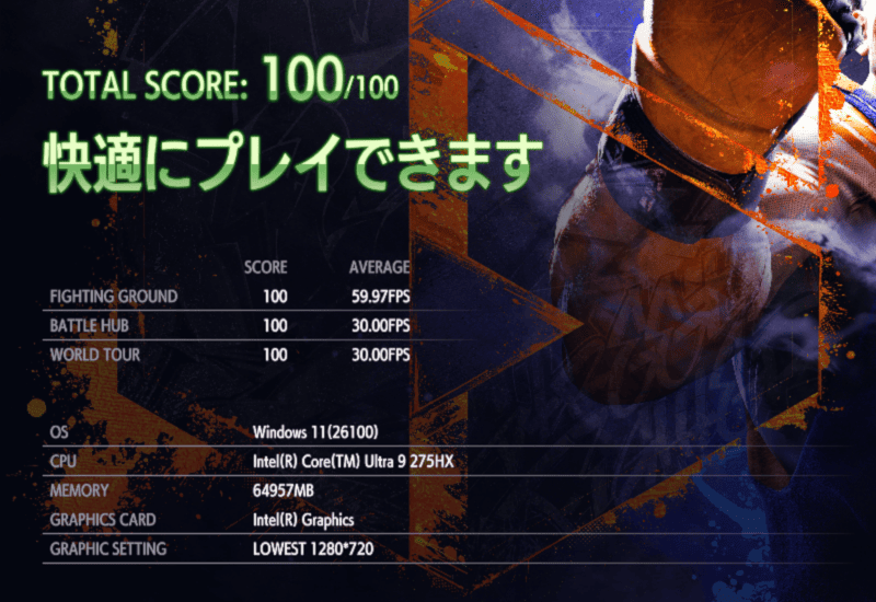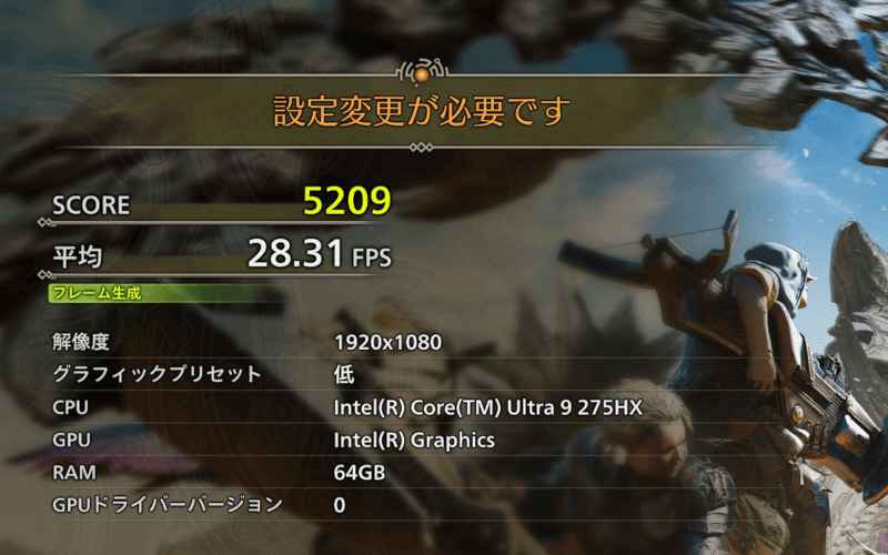 | 1280・標準 | 9602 快適 66.2 fps |