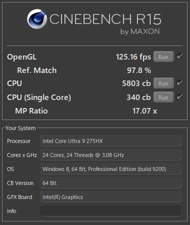 | CINEBENCH R15 | OpenGL | 125.16 fps |